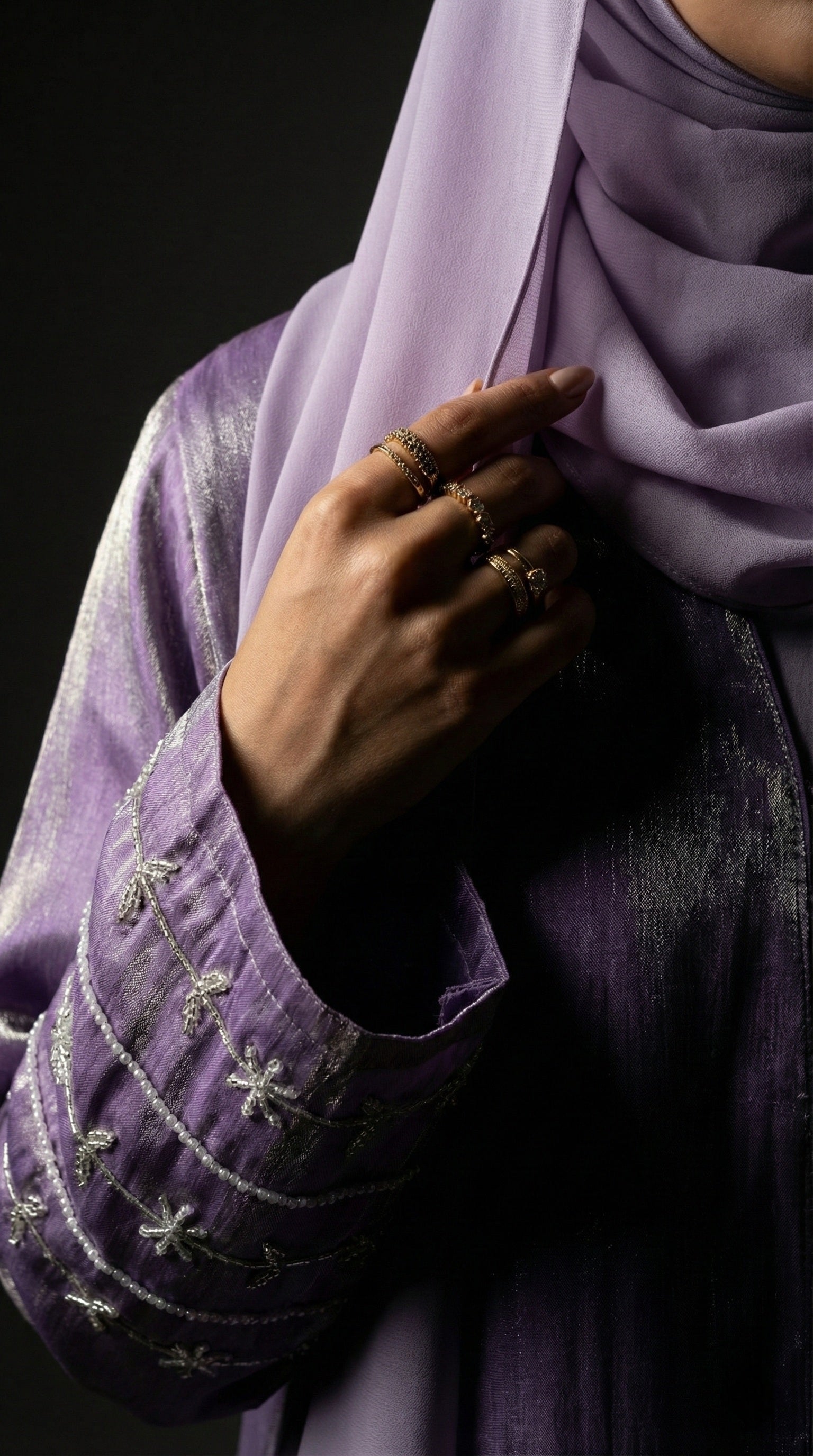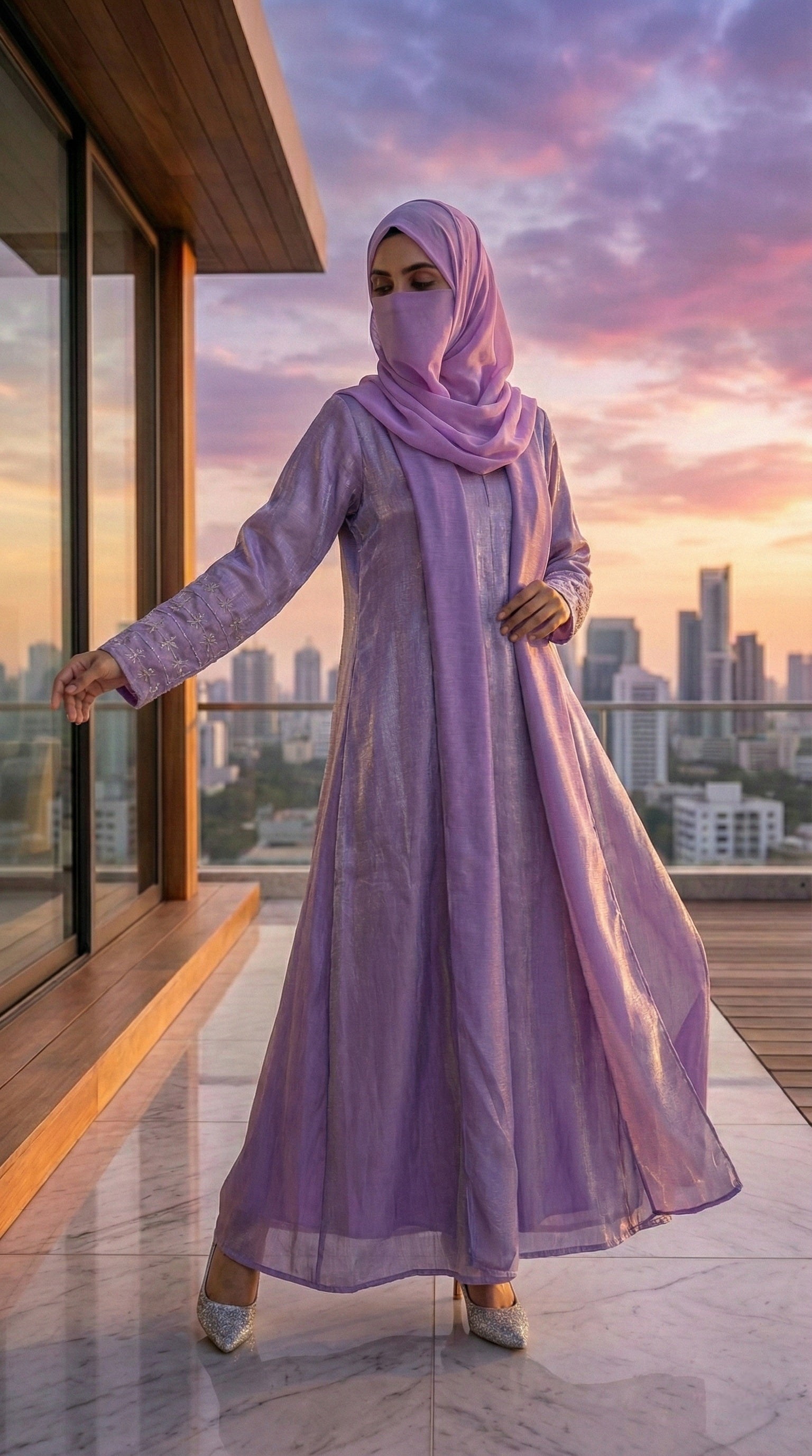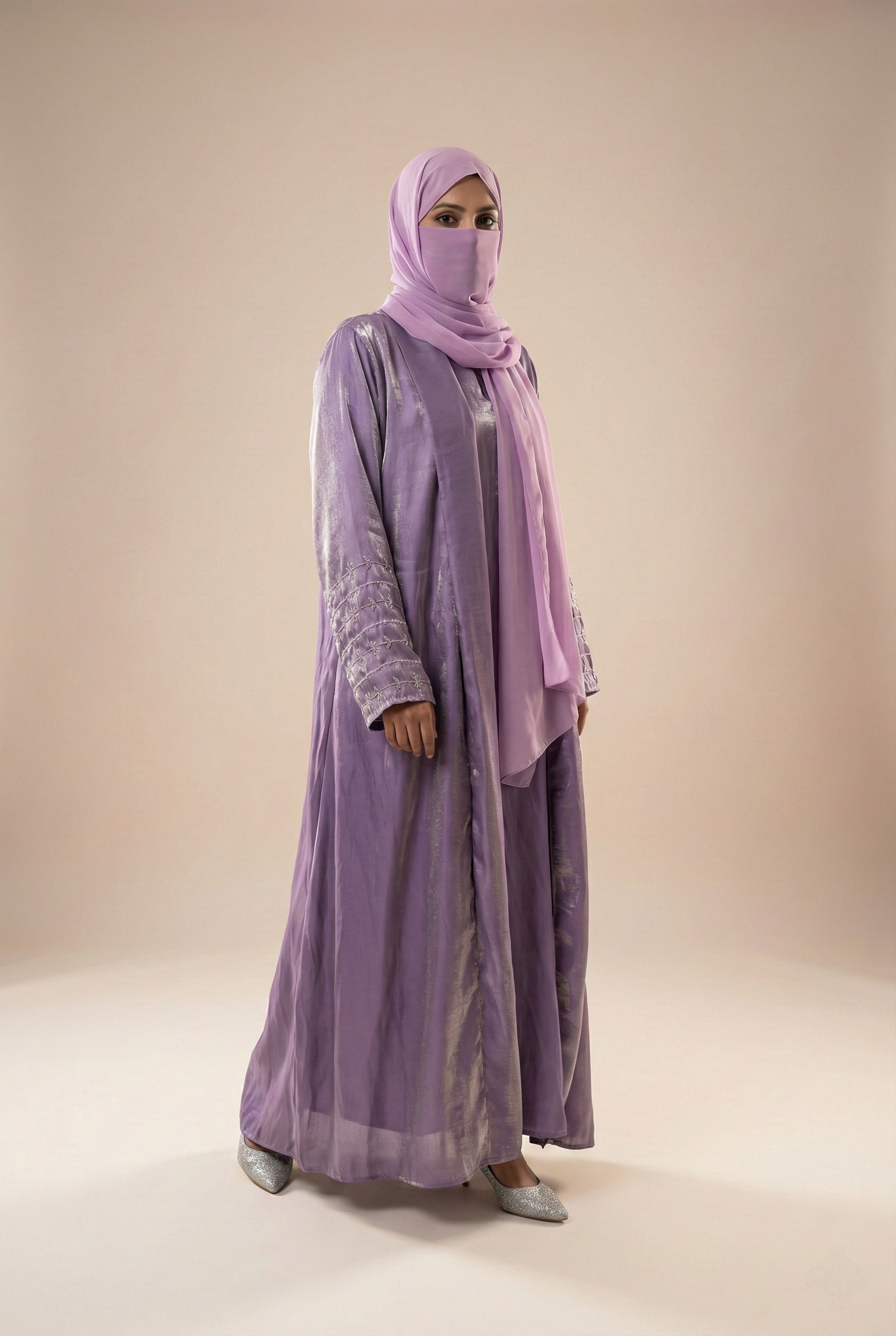 Imported Rotana Shimmer Open Jacket Abaya – Premium Modest Wear