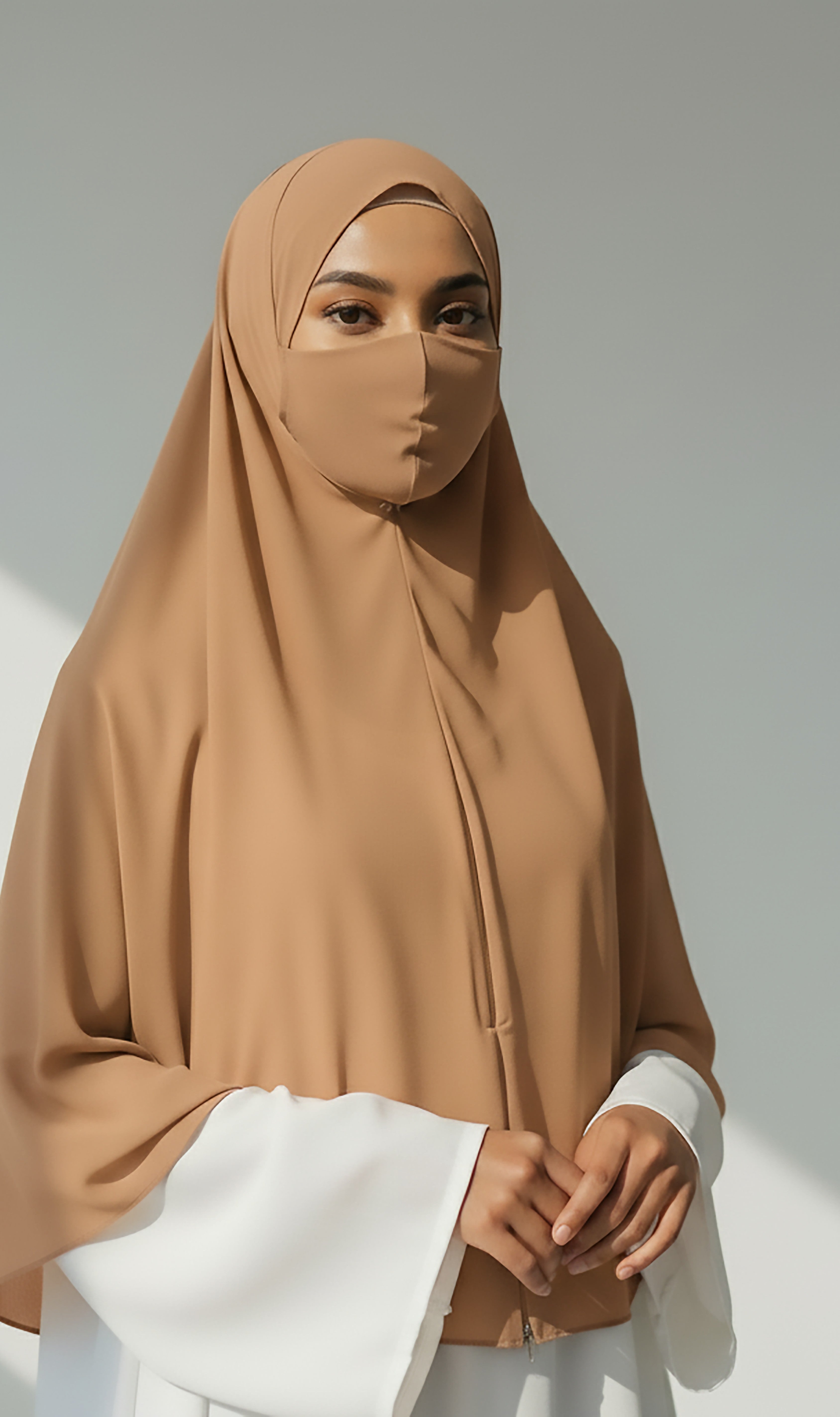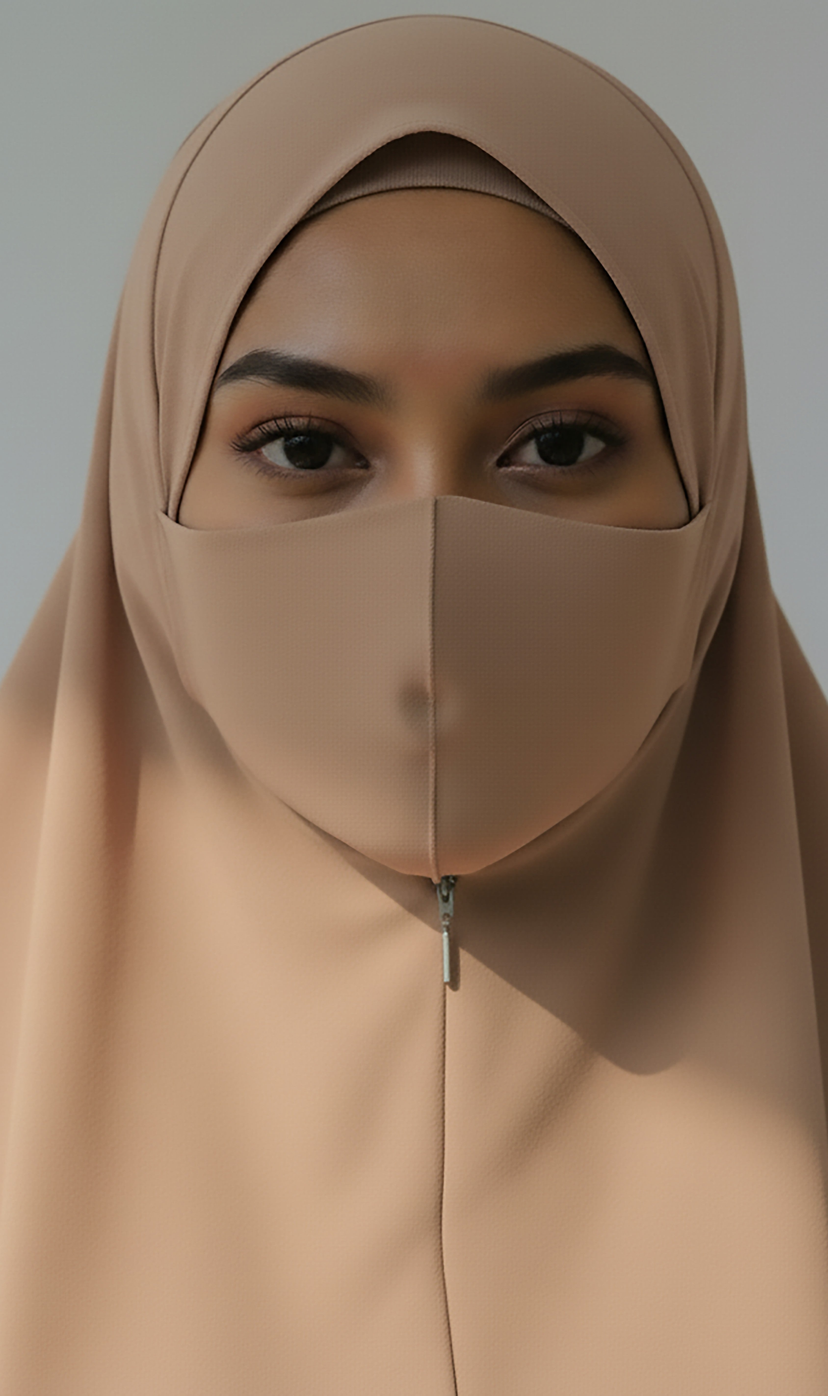 Rich Elegance – Coffee Brown Instant Hijab with Zip Closure | Dual-Layer Imported Korean Chiffon | Flowy & Feminine | Malaysian Hijab