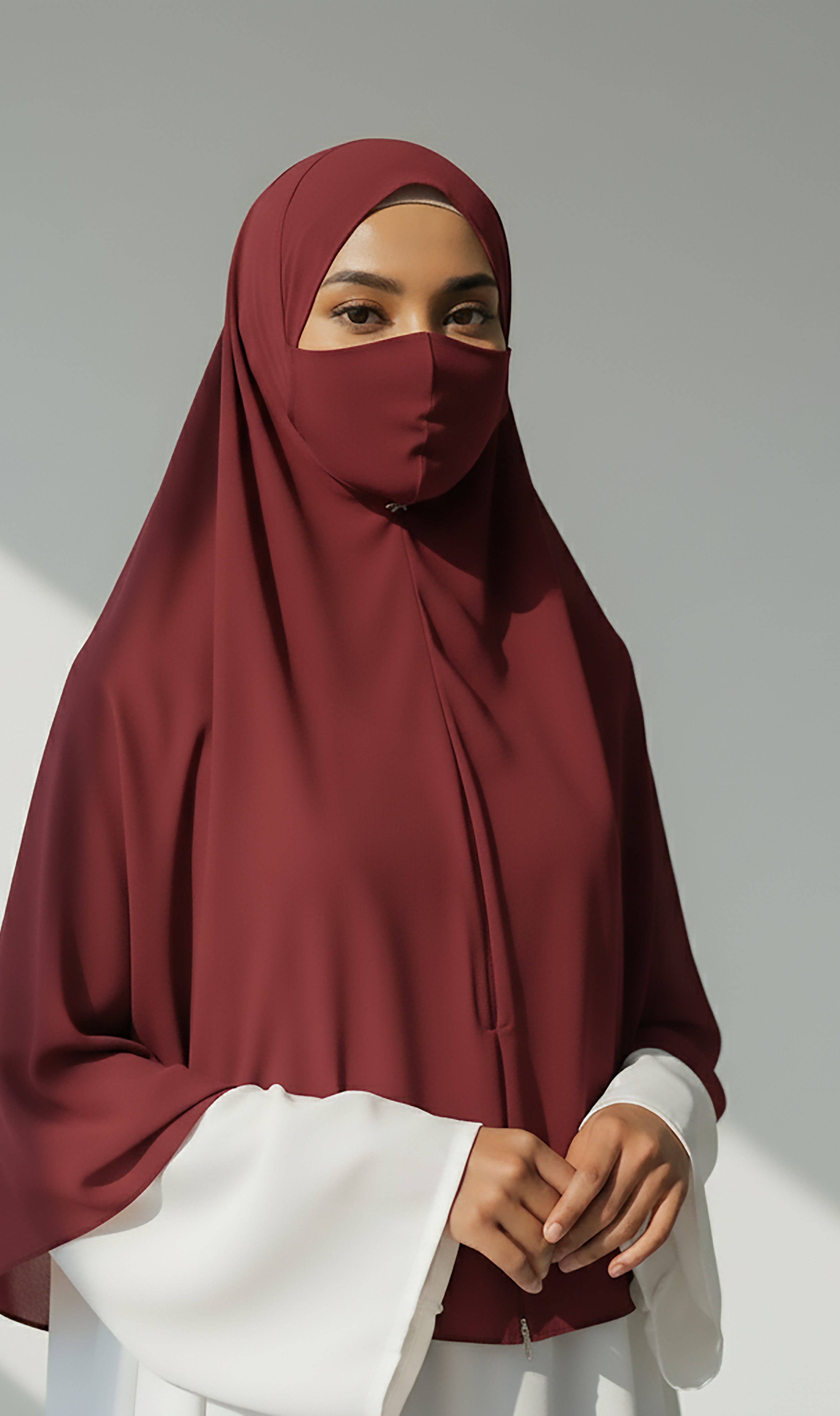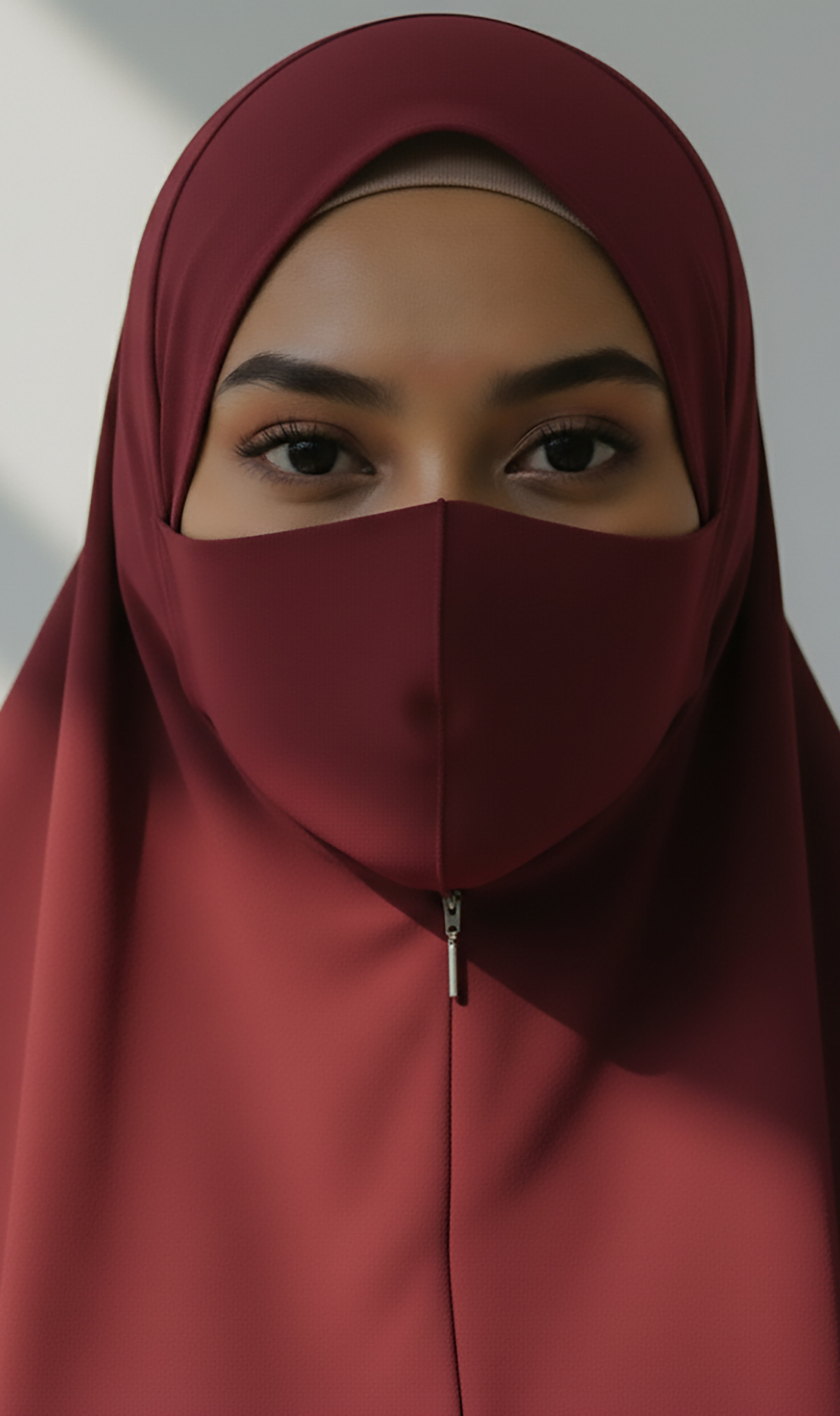 Maroon Instant Hijab With Zip | Double-Layer Korean Chiffon Veil | Luxe Everyday Modesty | Malaysian Hijab
