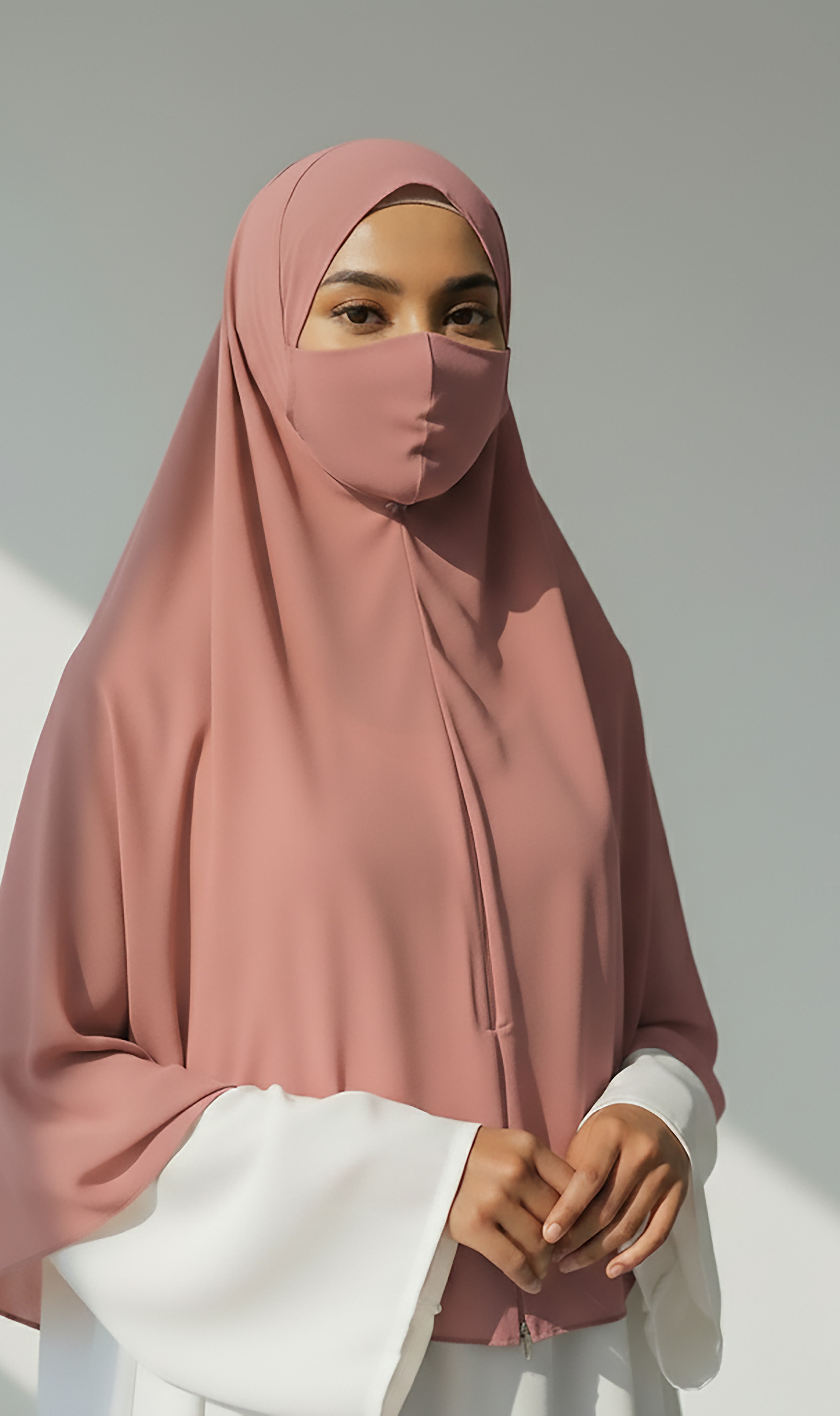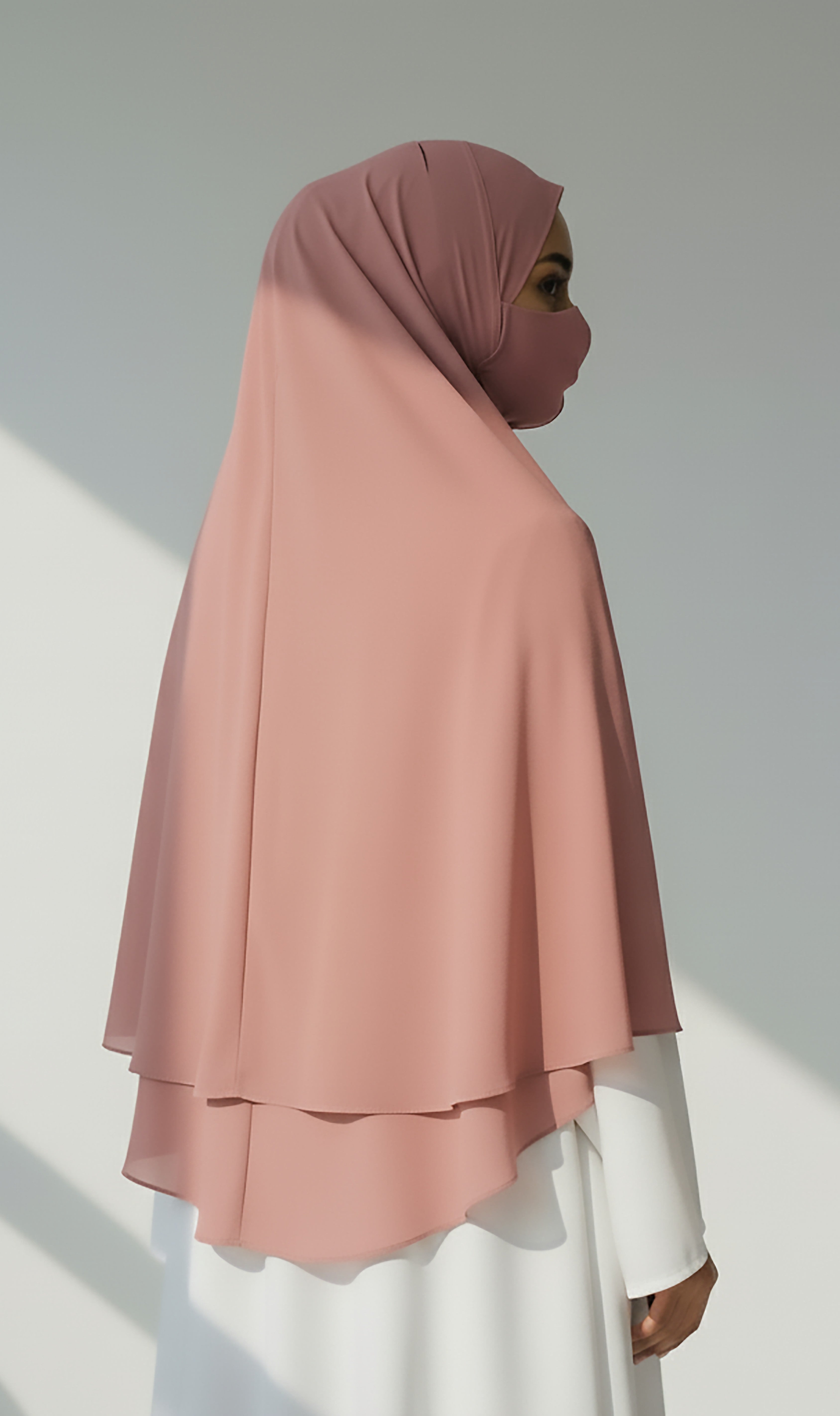 Blush Bloom – Powder Pink Instant Hijab with Zip Closure | Dual-Layer Imported Korean Chiffon | Flowy & Feminine | Malaysian Hijab