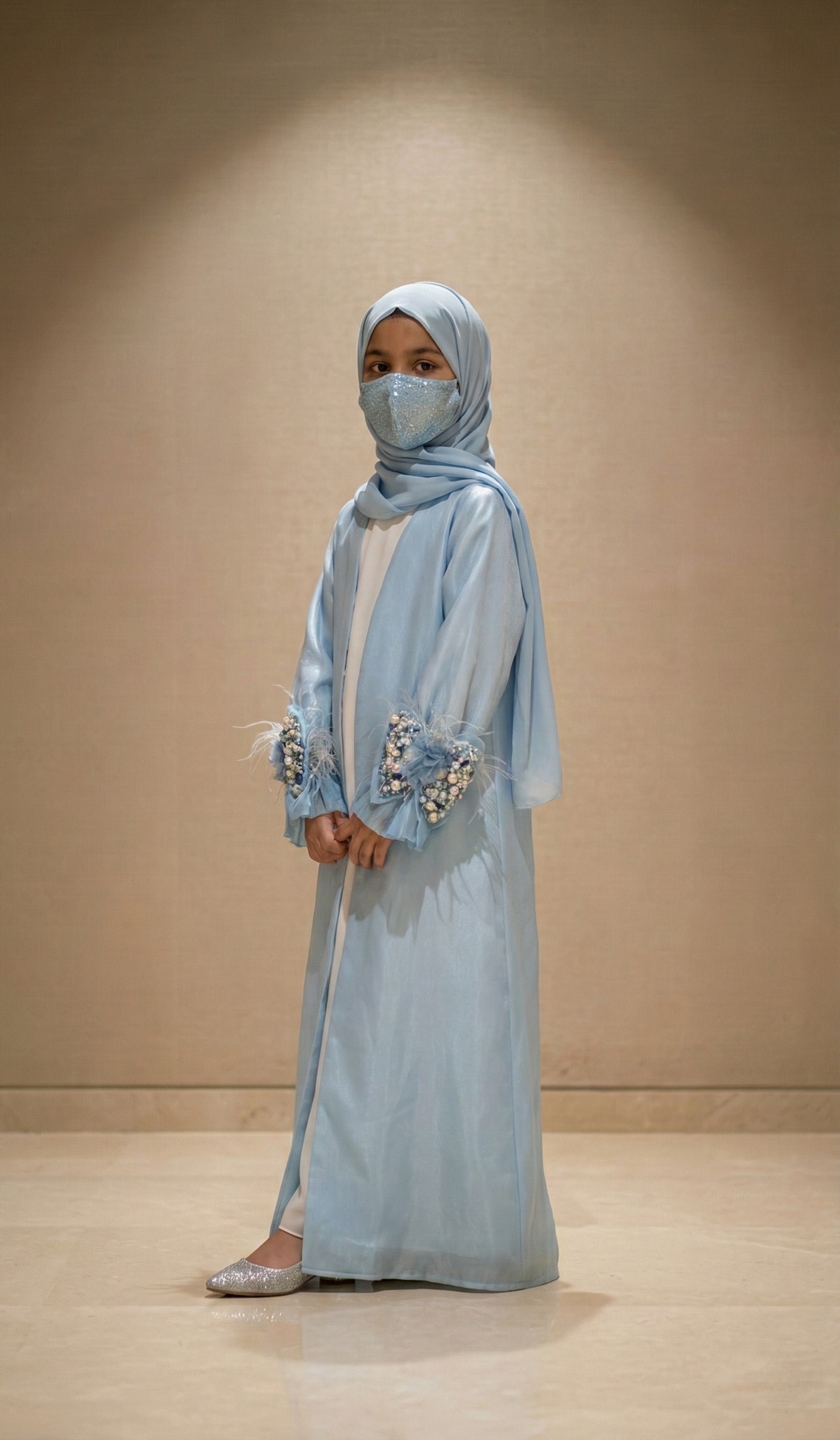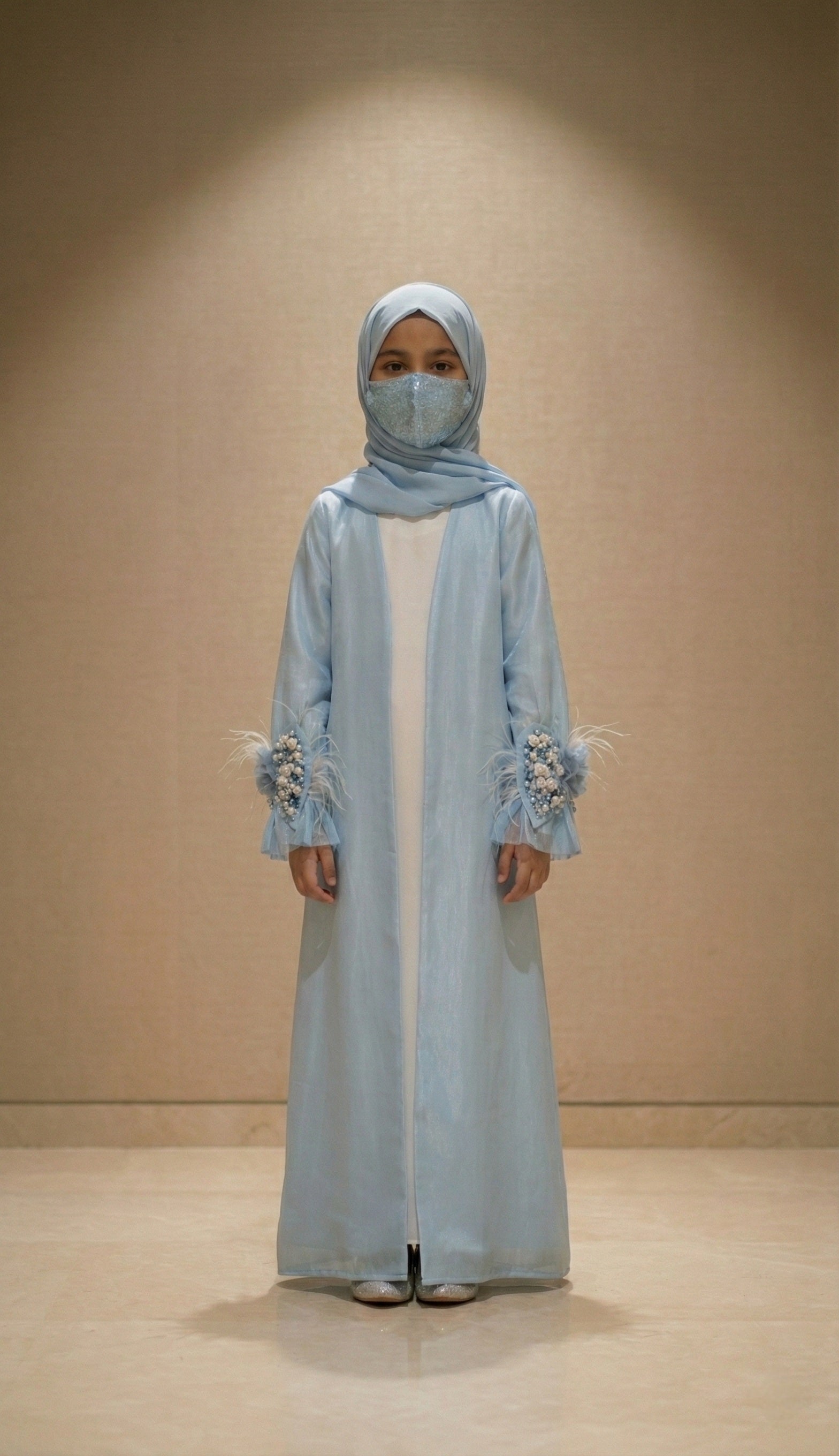 Luxury Kids Jacket Abaya – Soft Glamour with Graceful Modesty Feather Cuff Designer Modest Wear