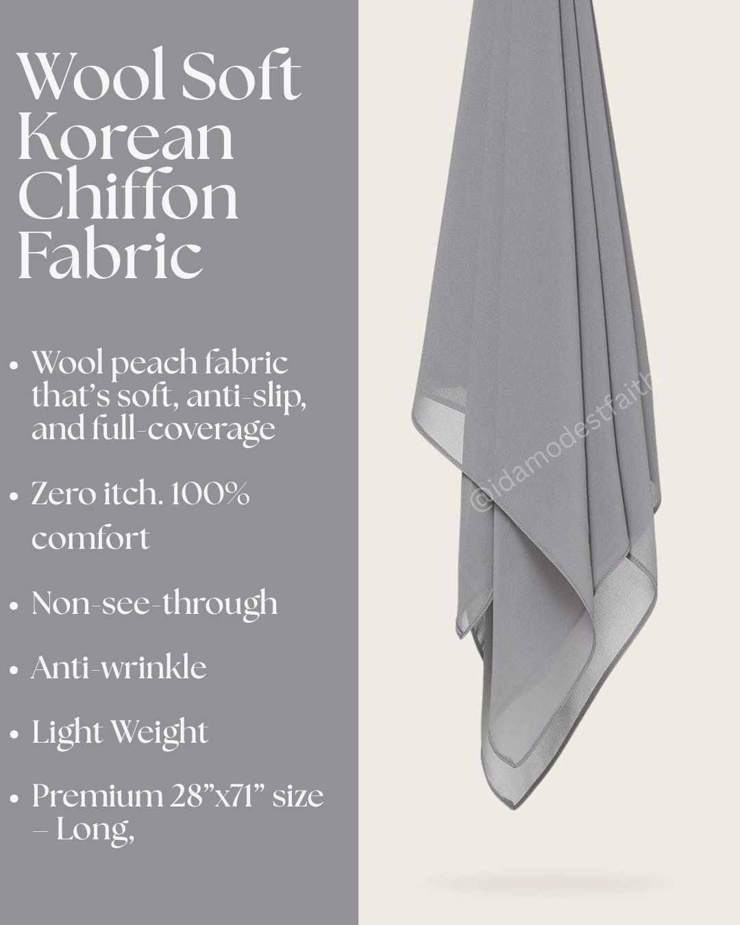 Grey Plain Hijab - Wool Soft Korean Chiffon Fabric